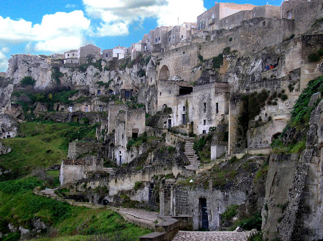 Los Sassi di Matera conforman el centro histórico de la ciudad de Matera. Los Sassi de Matera fueron incluidos en la lista de la Unesco de Patrimonio de la Humanidad en 1993. Fue el primer sitio de la lista en el sur de Italia. La inscripción fue motivada por el hecho de que representan un ecosistema urbano único, capaz de perpetuar el más lejano pasado prehistórico, los modos de vida de las cuevas hasta los tiempos modernos. Los Sassi de Matera son un buen ejemplo de un uso cuidadoso en el tiempo de los recursos naturales: agua, tierra y energía. La excursión a MATERA promete ser muy interesante. El principal inconveniente es el nivel de dificultad por lo escarpado del terreno. El peligro es" castiga"r en exceso las rodillas de quienes las tenemos un tanto desgastadas por la edad. Aunque esto es una circunstancia muy personal. Descripción